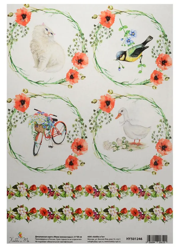 Декупажная карта Маки (миниатюры) (HY501246) (21х30см)