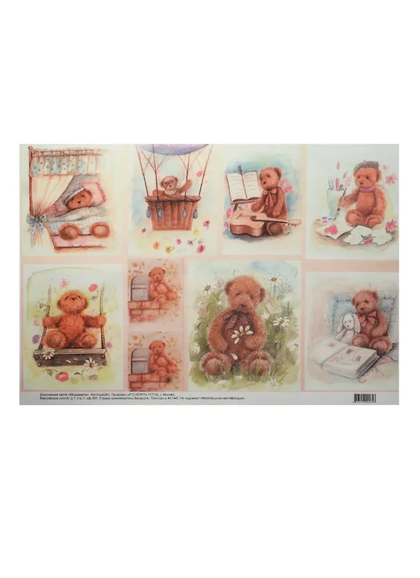 Декупажная карта Медвежата (А4) (Karal262) (упаковка)