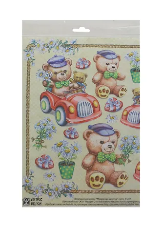 Декупажная карта Мишка на машине (Е-167) (упаковка)
