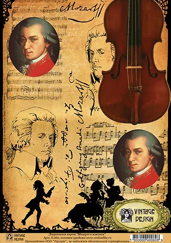 Декупажная карта Моцарт в жженом (S-060) (упаковка)