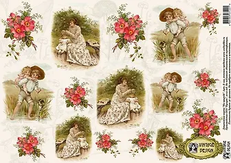 Очень тонкая бумага не требующая шкурения и замачивания. Все что нужно для начатала работы - вырезать мотив, промазать его с обратной стороны клеем и приклеить.