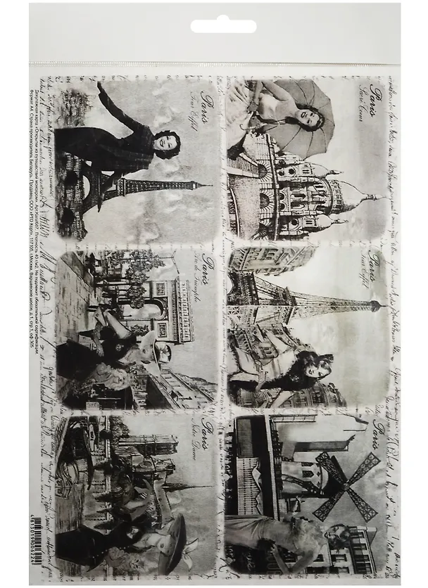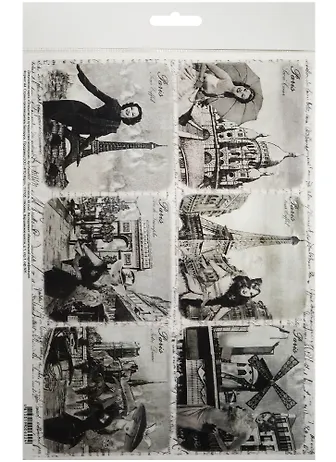 Декупажная карта Открытки из путешествий монохром (А4) (пл. 40г/м2) (Karal687) (упаковка)