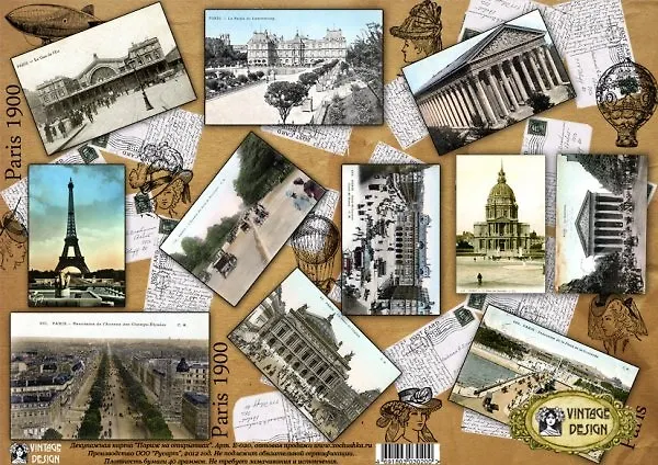 Декупажная карта Париж на открытках (E-020) (упаковка)