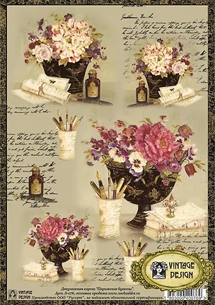 Декупажная карта Парижские букеты (S-076) (упаковка)