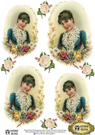 Декупажная карта переводная Дама в цветах (D-044) (упаковка)
