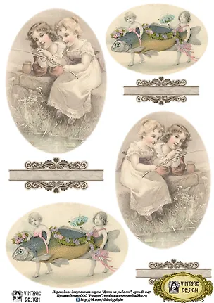 Декупажная карта переводная Дети на рыбалке (D-047) (упаковка)