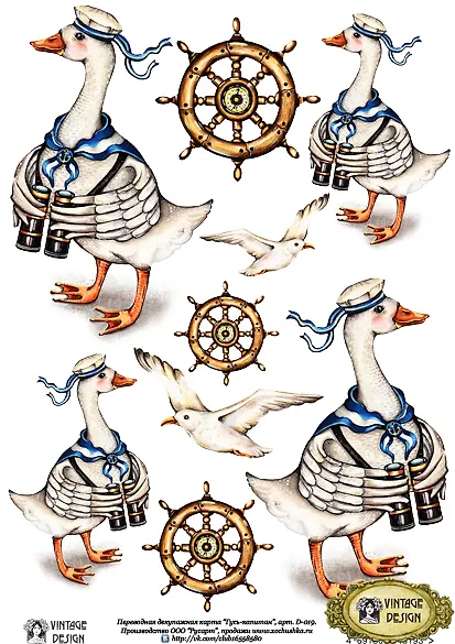 Декупажная карта переводная Гусь-капитан (D-019) (упаковка)