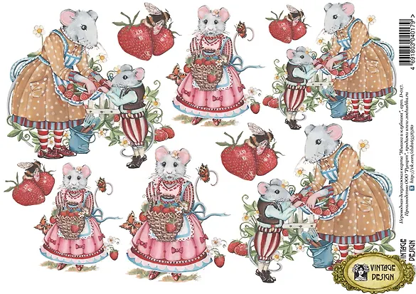 Декупажная карта переводная Мышка и клубника (D-017) (упаковка)