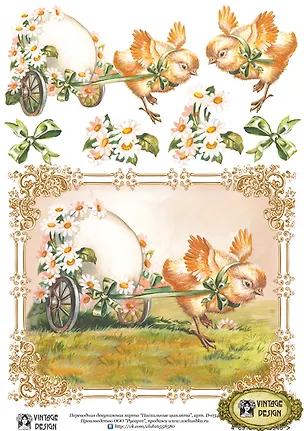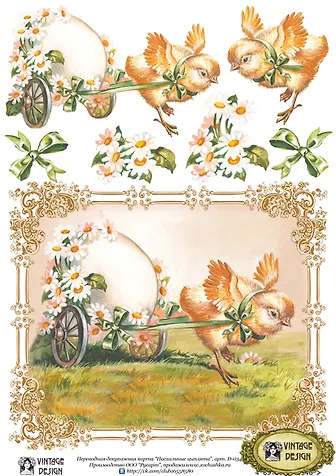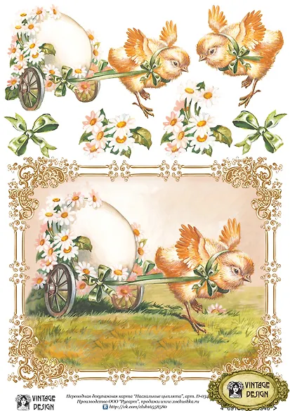 Декупажная карта переводная Пасхальные цыплята (D-034) (упаковка)