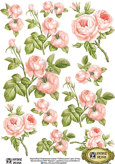 Декупажная карта переводная Садовая роза (D-025) (упаковка)