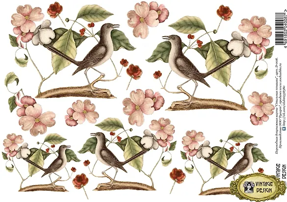 Декупажная карта переводная Стильная пташка (D-008) (упаковка)