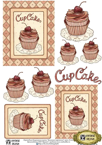 Декупажная карта переводная Вишневое пироженое (D-028) (упаковка)