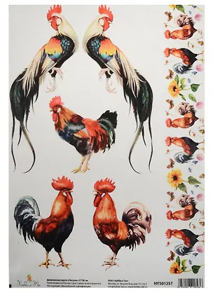 Декупажная карта Петухи 21*30см
