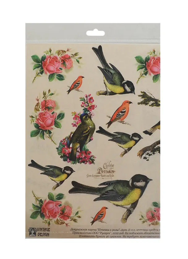 Декупажная карта Птицы и розы (Е-114) (упаковка)