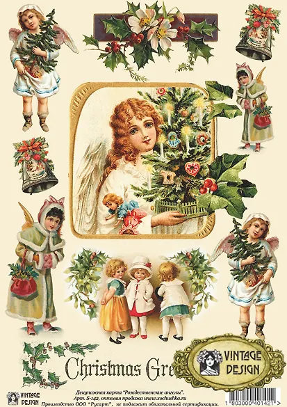 Декупажная карта Рождественские ангелы (S-142) (упаковка)