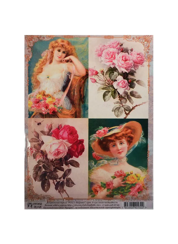 Декупажная карта Розы и девушки (S-132) (упаковка)