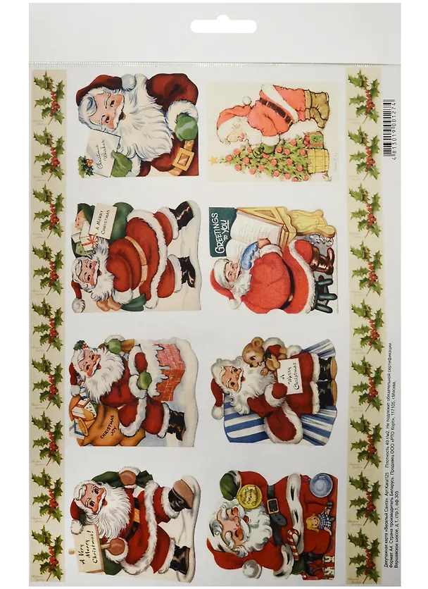 Декупажная карта Веселый Санта (А4) (пл. 40г/м2) (Karal125) (упаковка)