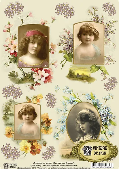Декупажная карта Винтажные девочки (старинные девочки) (S-063) (упаковка)