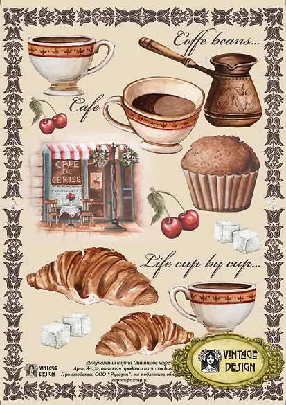 Декупажная карта Вишневое кафе (S-072) (упаковка)