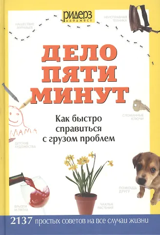 Мы постоянно сталкиваемся с мелкими бытовыми проблемами: сломалась какая-то вещь, стала скрипеть дверь, подгорело мясо, дети разрисовали обои, на костюме появилось жирное пятно и т.д. Найти быстрый выход из многих повседневных ловушек поможет книга "Дело пяти минут".