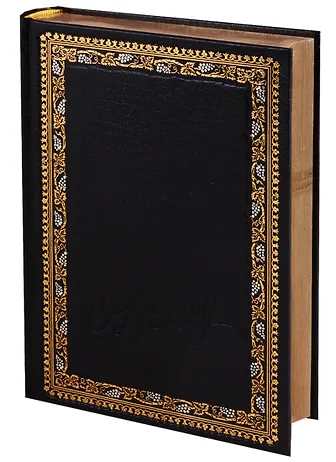 Стильно оформленное подарочное издание в кожаном переплете, украшенном золотым и блинтовым тиснением, с трехсторонним золотым обрезом и шелковым ляссе.