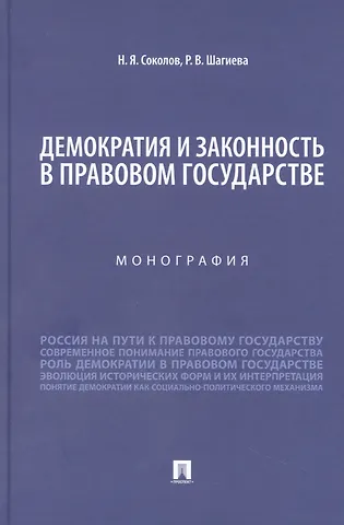 Работа посвящена важным социально-правовым ценностям в правовом государстве - законности и демократии и их совершенствованию в современном российском обществе. В ней обоснованы теоретические положения, направленные на дальнейшее развитие юриспруденции, и определение основных направлений развития правовой государственности в ХХI в. Для студентов юридических вузов в целях углубленного изучения курсов "Теория государства и права" и "Актуальные проблемы теории государства и права", а также всех фундаментальных юридических дисциплин. Книга заинтересует и практикующих юристов, и участвующих в законодательном процессе специалистов-юристов.