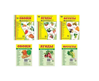Демонстрационные картинки СУПЕР. Овощи, фрукты, ягоды (комплект из 3-х наглядных материалов в папках + 3 набора карточек)