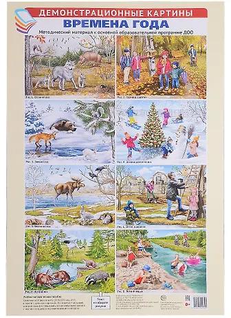 Издательство «ТЦ Сфера» представляет комплект «Времена года», состоящий из 8 цветных демонстрационных картин формата А3 и этикетки, на обороте которой приводятся беседы, игры, занятия и упражнения с детьми по каждой картине. Дети познакомятся с особенностями времен года, узнают, как сезонные изменения в природе отражаются на растительном и животном мире, чем занимаются дети и взрослые в каждый период времени, сумеют почувствовать красоту природных явлений и найти для себя много интересных и познавательных занятий. Помимо этого, сыграют в дидактические, развивающие и подвижные игры, ответят на вопросы воспитателя, педагога), научатся составлять описательный рассказ. Комплект подходит для инд