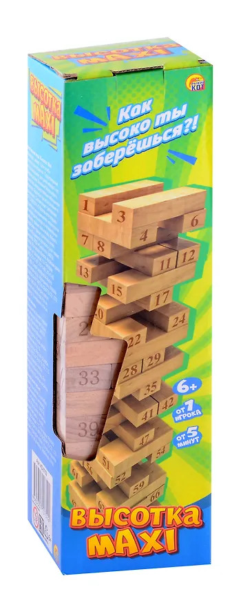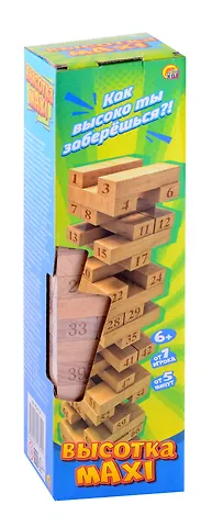 Что может быть интересней, чем игры с друзьями или семьей? Настольная игра "Башня. Высотка maxi" — то, что нужно для весёлого времяпровождения! Игроки должны по очереди доставать деревянные блоки из основания башни и класть их наверх, делая башню все более высокой и все менее устойчивой. Главная цель — положить блок так, чтобы не разрушить башню.