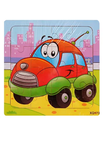 Деревянная пазл-рамка Рыжий кот Машинка 16 элементов 15х15см ИД-9963