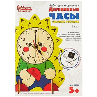 Представляем Вам еще одни деревянные часы «Ёжик» для самостоятельной сборки. Этот набор для творчества рассчитан для детей от пяти лет. В его состав входят: