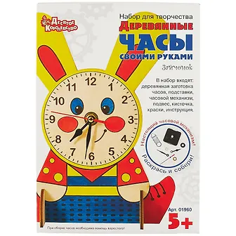 В любом возрасте дети стремятся узнать абсолютно все. Чтобы лучше понимать, окружающие вашего чада вещи, мы создали набор для творчества «Деревянные часы своими руками Зайчонок». Этот набор позволяет ребенку собрать настоящие часы и раскрасить их по личному вкусу.