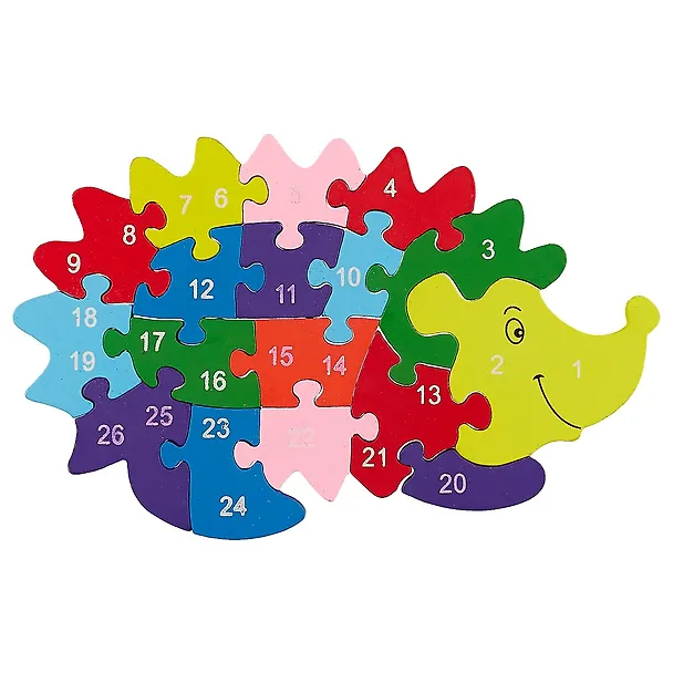 Пазлы развивают мышление и моторику пальцев. Эти пазлы полезны втройне – они помогают выучить цифры и английский алфавит. Собирая фигуру ёжика, ребёнок может считать детали и проверять себя по написанным на них цифрам. На обратной стороне деталей написаны буквы английского алфавита.