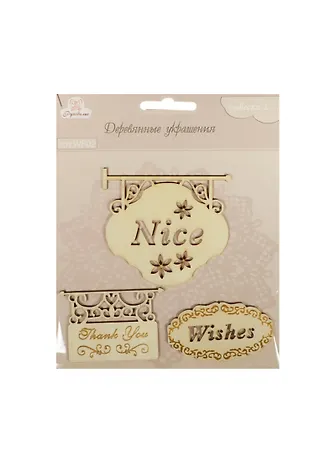 Деревянные украшения Вывеска-1 (WF02) (3шт) (Рукоделие) (упаковка)