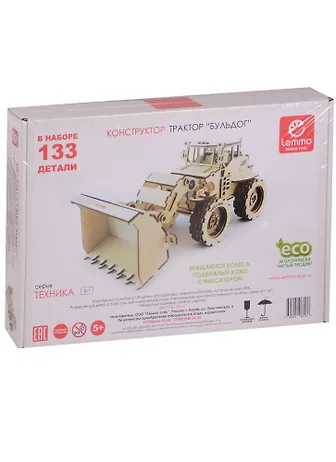 Деревянный конструктор Трактор Бульдог (Б-1) (133 дет.) (Техника) (коробка) (5+) (Lemmo)