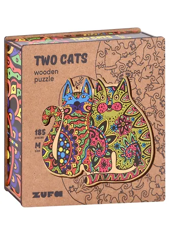 Деревянный пазл с двухслойной крышкой Два Кота M, 185 деталей