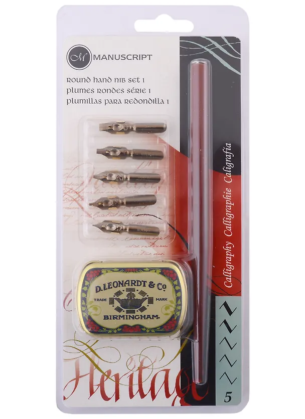 Держатель для пера с 5 перьями "Round Hand №1" блистер, Manuscript