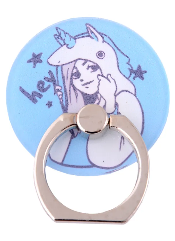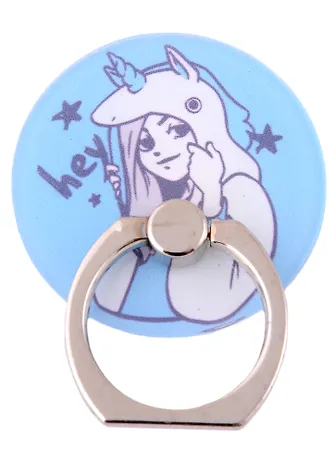 Держатель-кольцо для телефона Аниме Девушка в шапке-единороге комикс (металл) (коробка) (12-17727-AM-016)