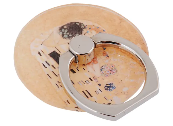 Отличная штука (забываю, как называется), крепится буквально намертво к чехлу, поэтому покупаю вторую такую штуку, поскольку от прежнего чехла первую (со "Звездным небом" Ван Гога) отодрала с огромным трудом и с "мясом", причем, часть "мяса" штуки осталась на чехле. Так что эта штука держится на телефоне (чехле) отлично! Телефон не потеряете! Металлическое кольцо (именно металл, а не крашенная пластмасса) поворачивается на 360 градусов, но не болтается, поэтому удобно фиксировать и в руках, и на поверхности. Рекомендую всем, кто, во-первых, любит творчество Климта; во-вторых, кому удобнее держать телефон не в руках, а зацепить на палец; в-третьих, кому нужно поставить телефон на поверхность, а не класть его плашмя для просмотра.