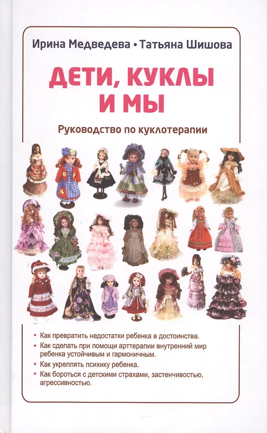 Ирина Яковлевна Медведева и Татьяна Львовна Шишова, авторы множества популярных книг по воспитанию детей и различным семейным проблемам, более 20 лет назад создали уникальную методику куклотерапии, позволяющую в короткие сроки без использования медикаментозных препаратов гармонизировать детскую психику. Страхи, повышенная застенчивость, возбудимость, расторможенностъ, энурез, заикание, тики и другие навязчивости, проявления демонстративности, агрессии, негативизма у детей и очень многое другое, что омрачает жизнь ребенка и его близких, можно успешно преодолеть с помощью методики драматической психоэлевации (так ее назвали авторы).