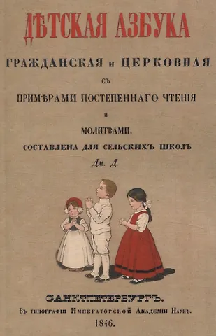 Детская азбука, гражданская и церковная, с примерами постепенного чтения и молитвами.