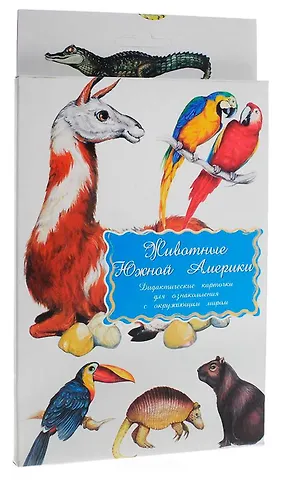 Знакомимся с гоацином, ягуаром, обезьяной-ревуном, туканом, шиншиллой, муравьедом, ленивцем, колибри, ламой, обезьяной-игрункой, игуаной, кайманом, капибарой, анакондой, попугаем арой, броненосцем. В комплекте 16 карточек. Разглядывая карточки, играя с ними, ваш ребенок не только обогатит свой багаж знаний об окружающем мире, но и научится составлять предложения, беседовать по картинкам, классифицировать и систематизировать предметы. Кроме того, с подобными карточками можно придумать множество интереснейших игр! Именно такие карточки можно рекомендовать родителям для познавательных игр с детьми и занятий по методике Глена Домана. Размер карточек 25*15 см.