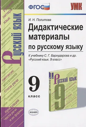 Пособие составлено на основе методической системы учебника С. Г. Бархударова и др. «Русский язык. 9 класс» и соответствует программе и изучаемому теоретическому материалу.