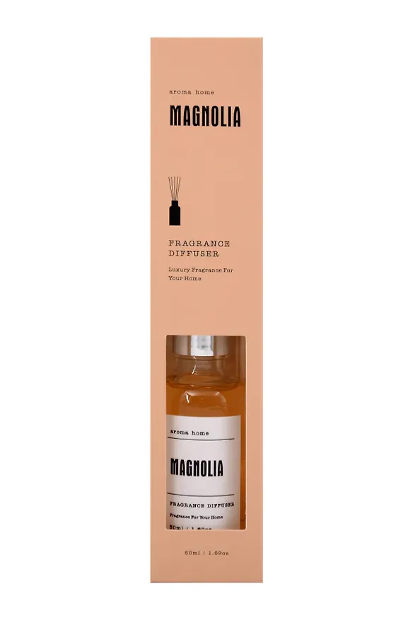 Ароматический диффузор «Magnolia» объёмом 50 мл в коробке (артикул 12-EDENG-202505-HD28) — это интерьерный ароматизатор, который создаёт атмосферу свежести и уюта с помощью аромата магнолии. Он подходит для использования в жилых помещениях, офисах или спа-зонах.