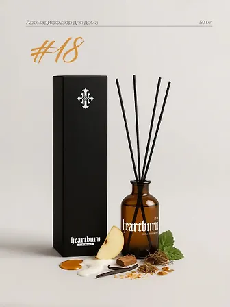 Аромат №18 от Heartburn создан для тех, кто ценит атмосферу уюта, утончённости и энергии в доме. Это глубокий, сливочный, бархатистый аромат, который окутывает пространство мягкими нотами, оставляя за собой шлейф комфорта и тепла.⠀Верхние ноты раскрываются сочным яблоком, нотами ликёра и тёплого молока. В сердце композиции — древесный дуэт пачули и ветивера с насыщенным акцентом кедра. База удерживает аромат на долгое время, сочетая ваниль, кокосовую карамель и сандал.⠀№18 идеально подойдёт для ароматизации гостиной, спальни или кабинета. Он помогает создать расслабляющую и благородную атмосферу, а также станет запоминающимся подарком для ценителей сложных и уютных ароматов.⠀✔ Без огня, без спирта — безопасно и просто✔ До 8 недель стойкости аромата✔ В комплекте: флакон 50 мл, 5 фибровых палочек, стильная коробка⠀Погрузитесь в атмосферу уюта и харизмы — попробуйте аромат №18 уже сегодня.