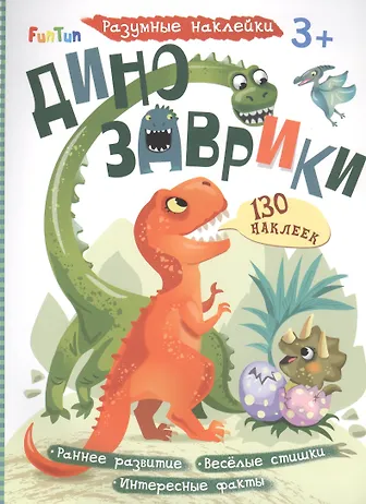 Искали для ребёнка, который любит тему динозавров различные книжки, журналы и т.д. Выбрали данный экземпляр, поведясь на огромное количество наклеек, красочное оформление, и значительно невысокую цену. В итоге, получив заказ, и изучив его дома были маленько расстроены, т.к., наклейки, хоть и в большом количестве, но очень маленького размера (около 1,5 сантиметров в диаметре), и совершенно неинтересны ребёнку, т.к. изображены разные пальмы, цветы, но только не динозавры