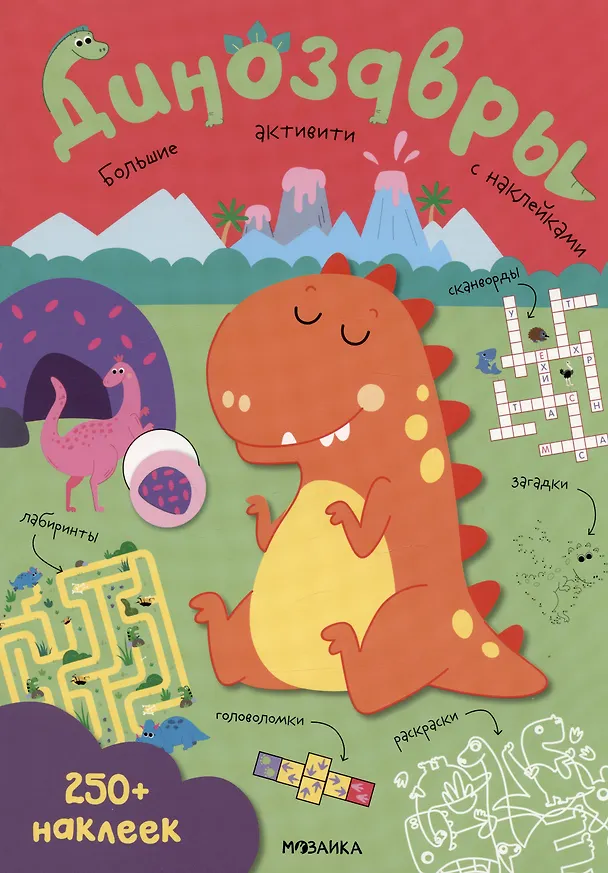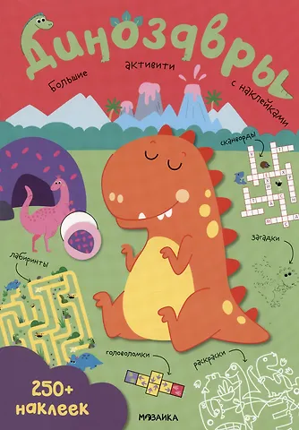 Книга «Динозавры» из серии «Большие активити. 250 наклеек» — настоящая находка! Тут есть все, что так обожают дети. Много-много наклеек: больше 250. Самые любимые герои — динозавры. И конечно, веселые развивающие задания. Стоит бросить вызов себе самому и найти выход из запутанного лабиринта, разгадать судоку, поломать голову над логическими задачками и поискать самые неожиданные отличия между картинками. Динозавры ответственно заявляют: скучно не будет! А еще такие занятия способствуют развитию логики, мышления, внимания, мелкой моторики, речи.