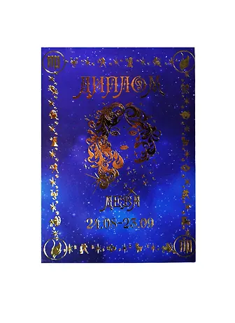 Наградите близкиго человека шуточным дипломом "Знаки зодиака"! Многие люди очень ревностно относятся к своему знаку зодиака, придавая ему сакральное, мистическое значение. Внутри диплома содержится гороскоп по каждому знаку зодиака, а также анкета.