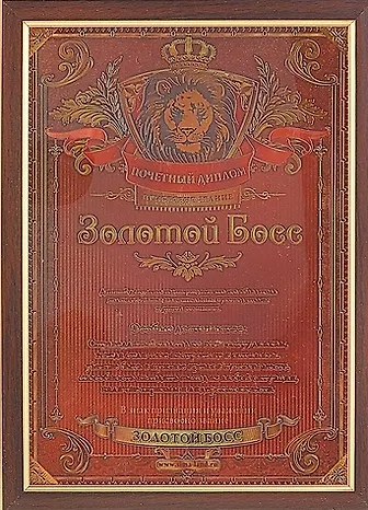 Диплом пластиковый в рамке Золотой босс (479708) (24х32,5) (Сима-ленд)