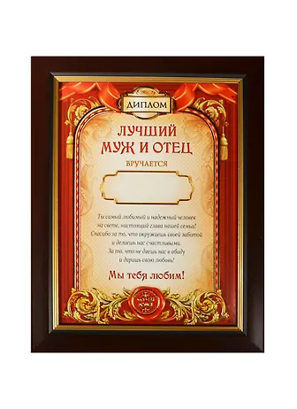 Диплом в рамке Лучший муж и отец (17,3х22,4) (870995)